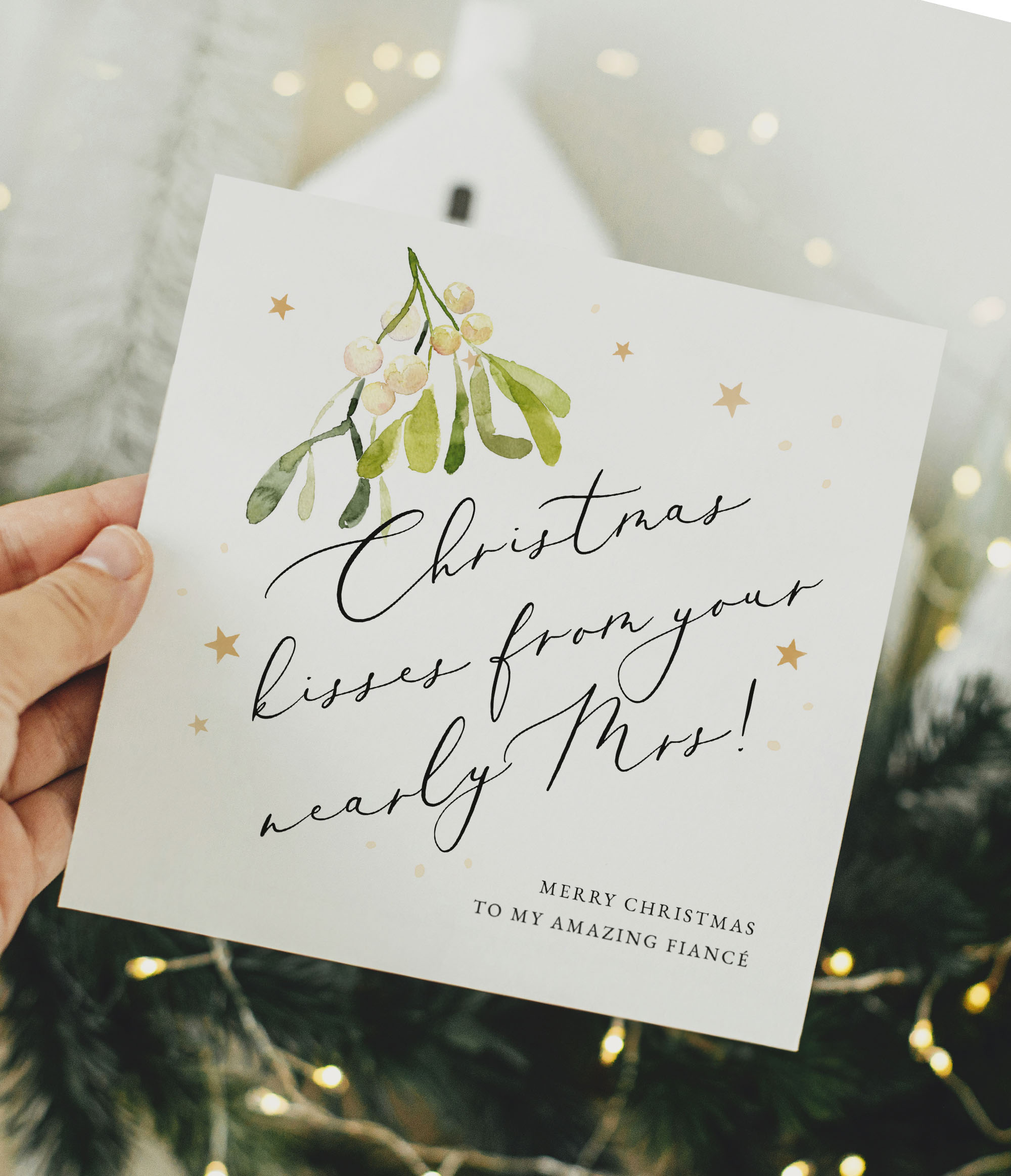 Fiancé Christmas Card | Kisses From Your Nearly Mrs