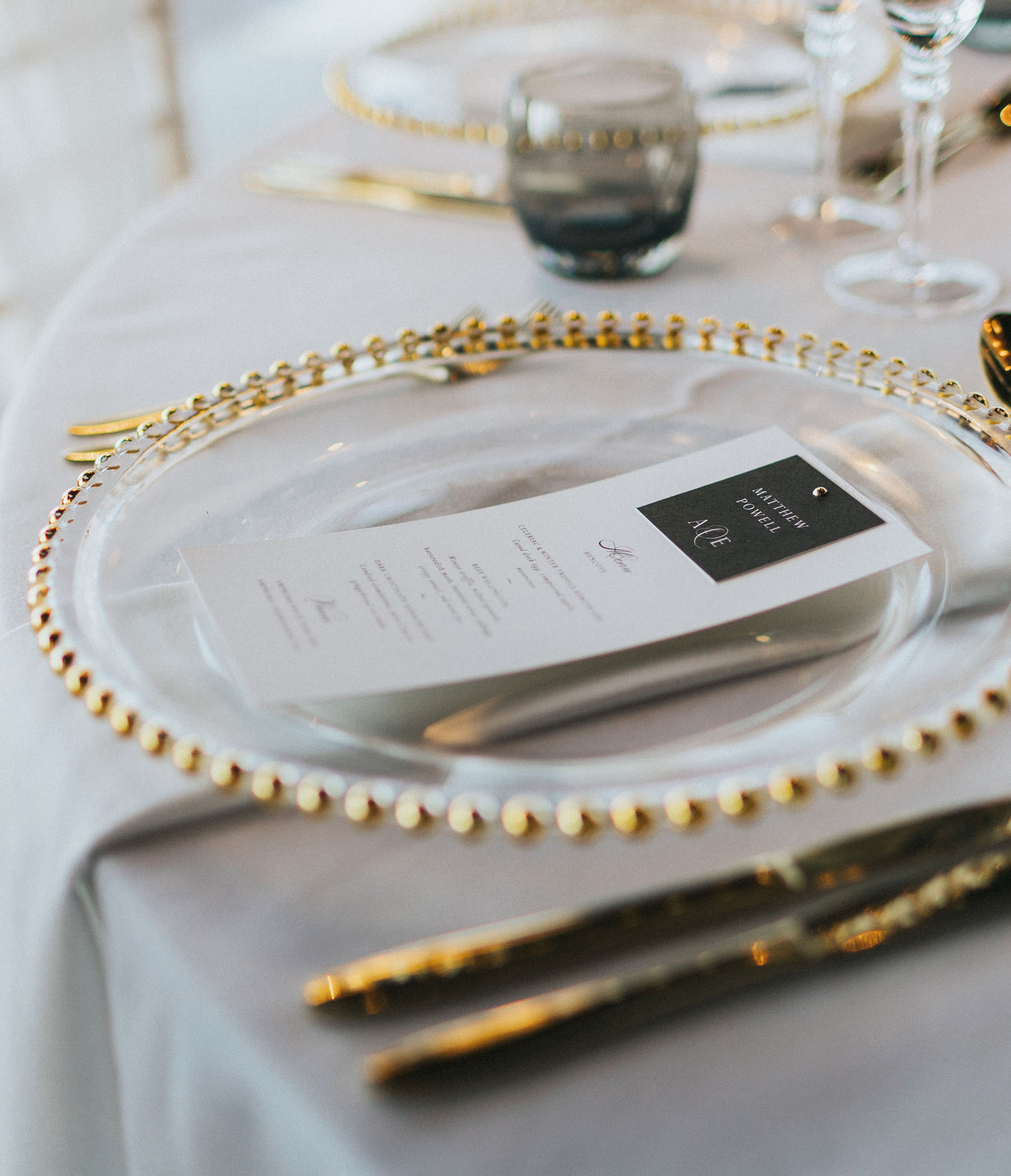 The table stationery too, has a very simple and sophisticated feel. It looks stunning in monochrome. Imagine with white linens and the shine of gold cutlery, perfection!
