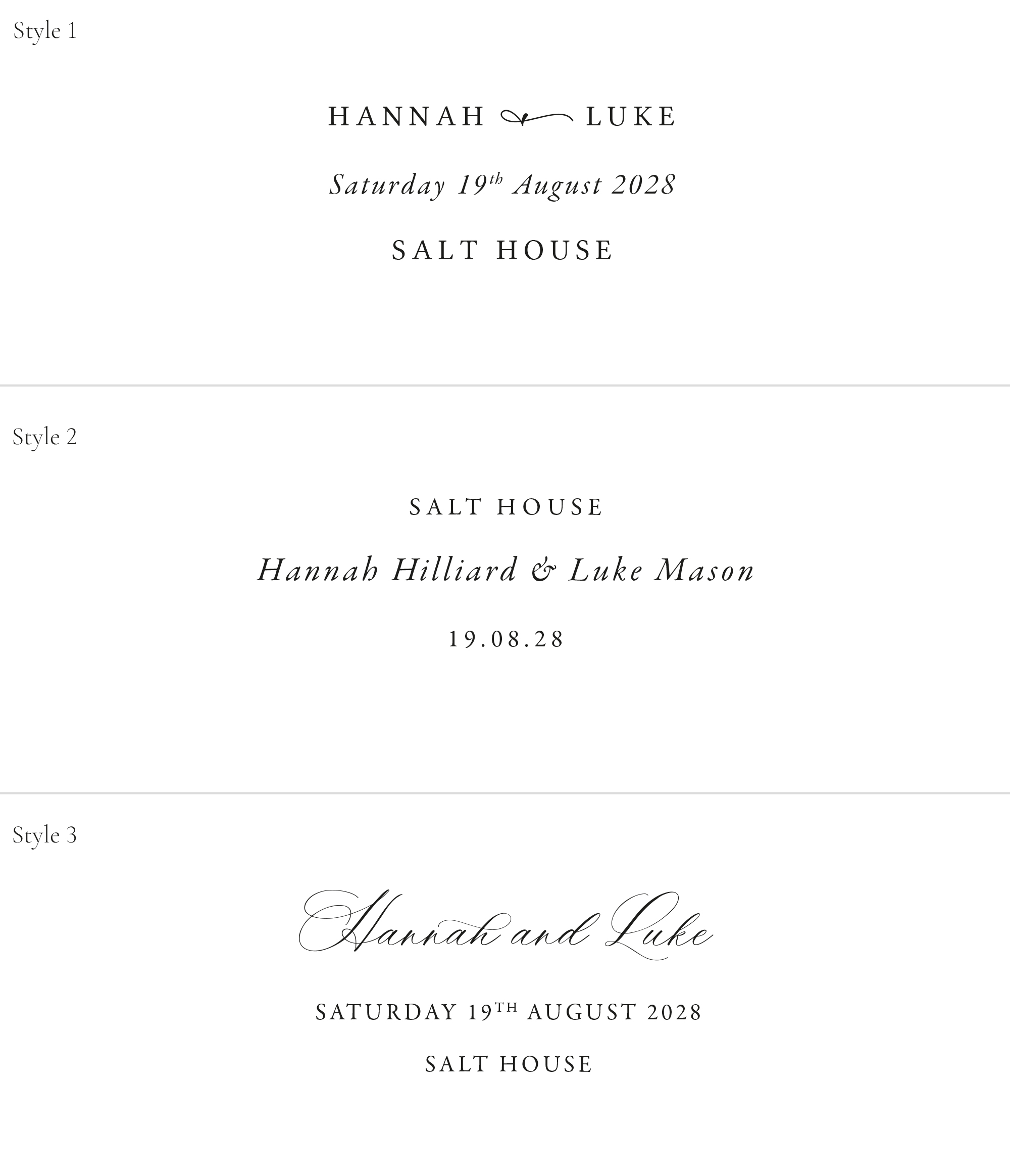 So to begin, all we need is the name of your venue. Once you’ve chosen your stationery pieces, we’ll take care of the rest and create something truly special for you.
